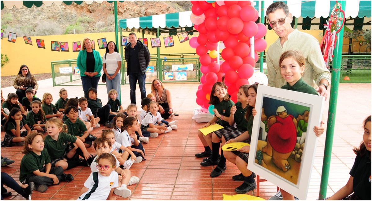 El pintor Octavio del Toro dona su cuadro ‘Bejeque’ para que la comunidad educativa del colegio celebre una puja con otros regalos de 23 empresas del municipio. Los 4.000 euros recaudados se entregan a la Fundación Pequeño Valiente