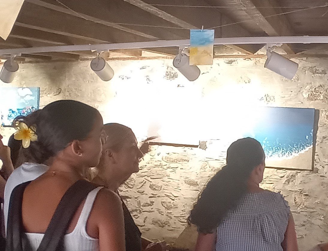 La exposición ofrece fotografías que capturan la belleza y vulnerabilidad del paisaje, acuarelas que evocan la relación nativa con el mar, carteles con mensajes de concienciación ambiental, lienzos nacidos de la experimentación con texturas y materias que reflexionan sobre nuestra raíz e identidad y piezas cerámicas inspiradas en los fondos marinos y en el vínculo que mantenemos con la naturaleza.